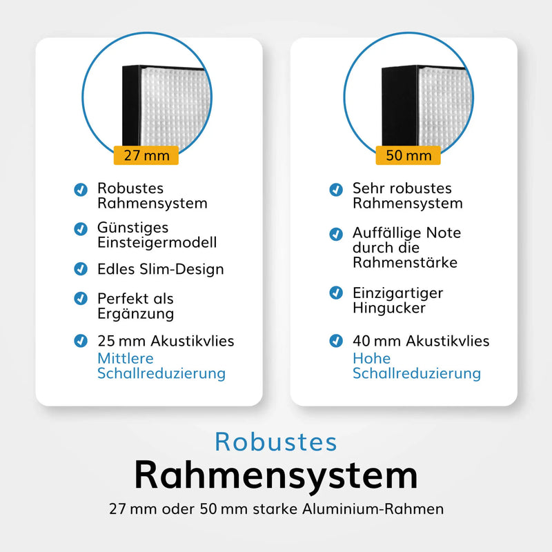 - Robustes Rahmensystem: 27 mm oder 50 mm starke Aluminiun-Rahmen