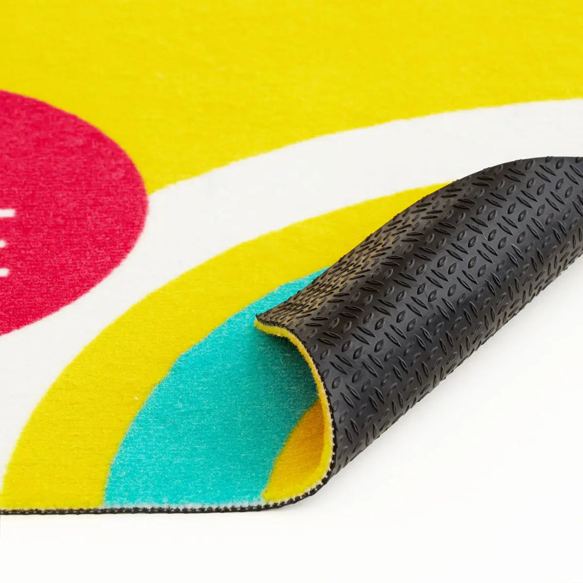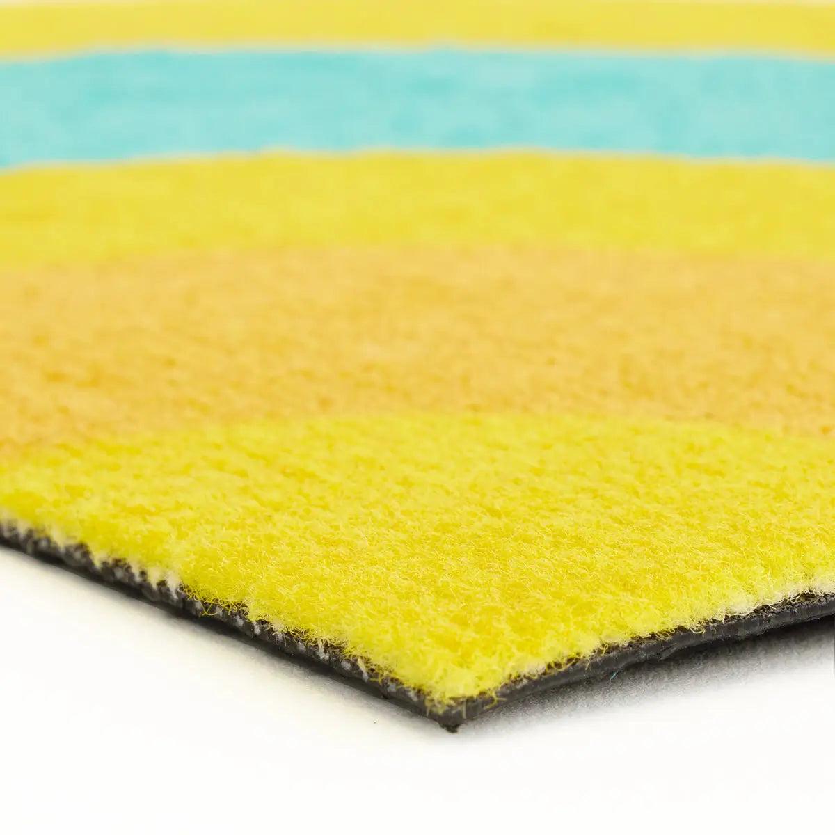 Bei Deiner Fußmatte mit Logo handelt es sich um einen strapazierfähigen Veloursteppich, der über einen Rücken aus Nitrilgummi verfügt. Das synthetisch hergestellte Gummi zeichnet sich durch eine hohe Abriebfestigkeit aus und ist sowohl zug- als auch reißfest. Außerdem sorgt es dafür, dass die Logomatten auch bei Nässe nicht so leicht verrutschen und an Ort und Stelle bleiben. Zusätzlich ist jede bedruckte Fußmatte mit einer umlaufenden, jeweils zwei Zentimeter breiten Gummilippe ausgestattet. Sie sorgt für zusätzliche Rutschfestigkeit und schützt den Velours. Falls Dein Eingangsbereich sehr hell oder gar sonnendurchflutet ist: Kein Problem, Deine Schmutzfangmatte mit Logo ist natürlich UV-beständig (Lichtechtheitsfaktor 6) und behält ihre intensiven Farben!